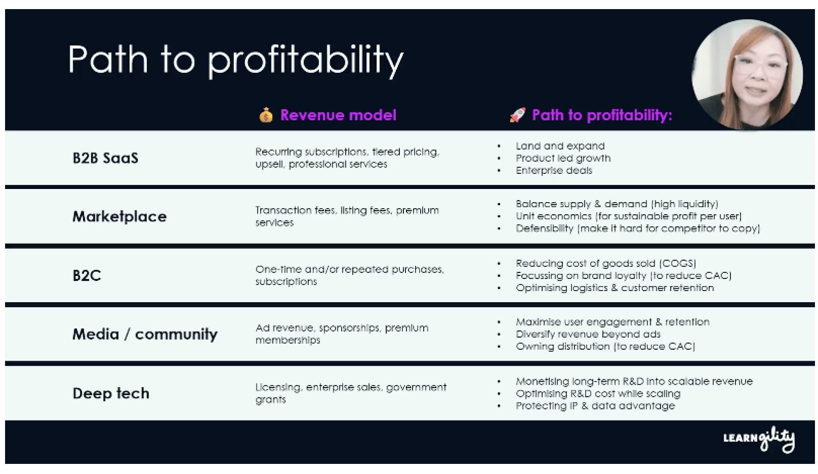 I took JooBee Yeow's Step Up MBA earlier this month — it was exactly the course I wish I'd had earlier in my career. Even now, I found myself pausing and screenshotting succinct descriptions — like the Path to Profitability slide below — of concepts that took years to learn.