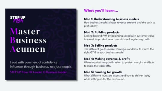 Whether you're an HR Manager building toward your first Head of People role, or a VP who wants to close gaps in your commercial fluency, this course will help equip you to build the business acumen that changes how you show up, how you're perceived, and how far you go.
